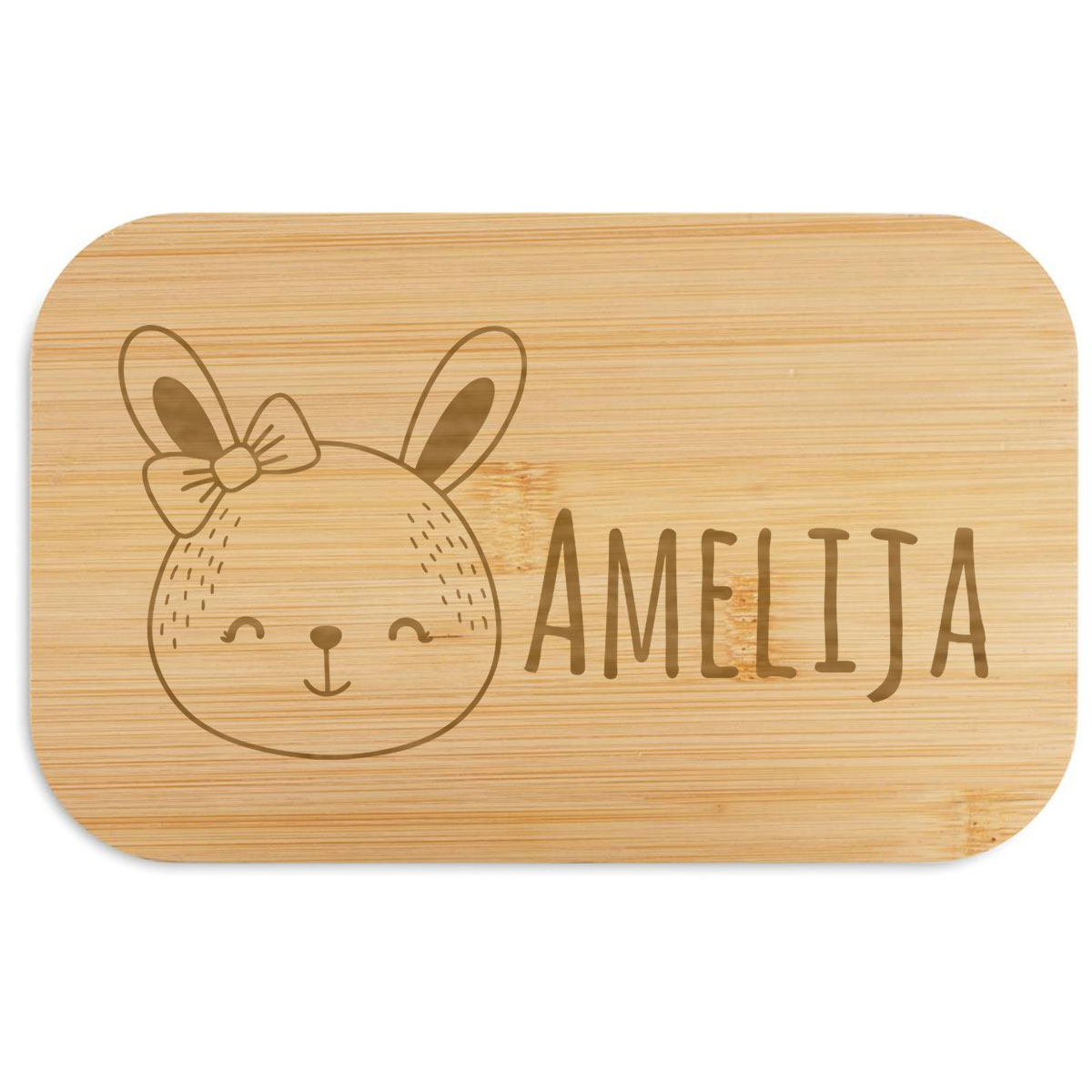 Svačinový box s motivem králíčka a vámi zvoleným jménem – praktická volba pro dětské obědy do školky, školy nebo na výlety. Jméno usnadňuje rozpoznání boxu a kompaktní velikost umožňuje pohodlné uložení jídla.